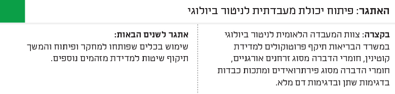 לוח 2: מתווה התוכנית הלאומית לניטור ביולוגי בישראל, 2030-2020