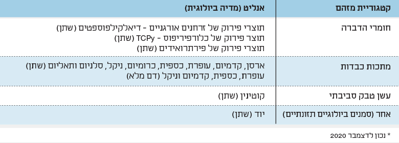 לוח 1: היכולת האנליטית במעבדה הלאומית לניטור ביולוגי*