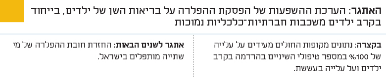לפי נתונים שנאספו בקרב ילדים בני 12 בכל הארץ במסגרת שירותי בריאות השן לתלמיד, יש ירידה במספר הילדים ללא עששת (23% ב-2017 לעומת 26% ב-2015).10