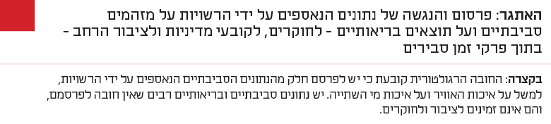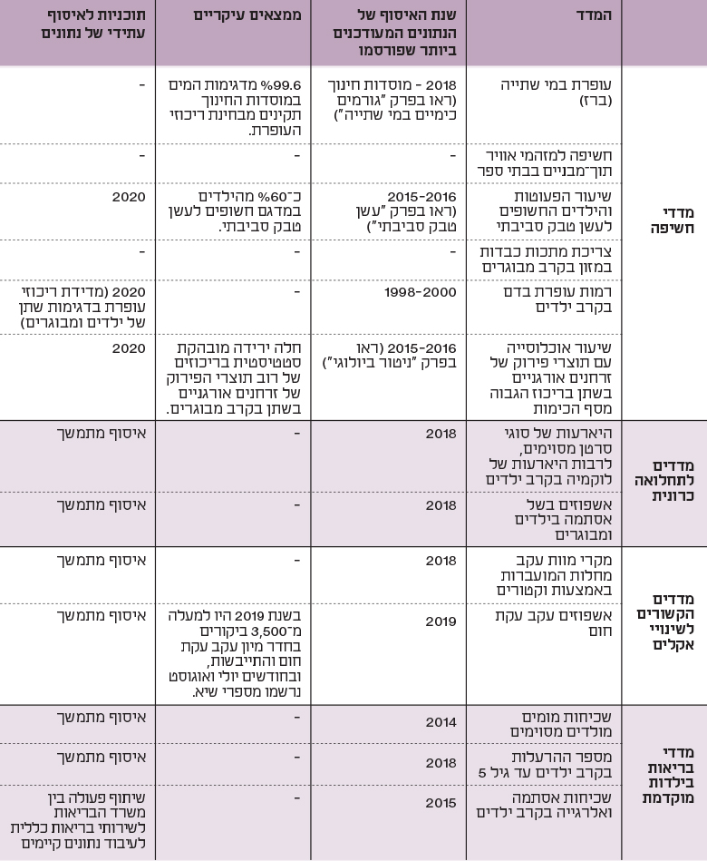 לוח 1: מדדי בריאות וסביבה נבחרים בישראל, סטטוס נתונים