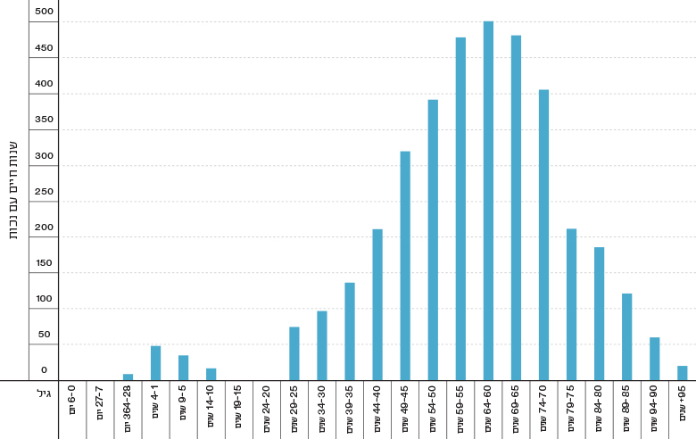 תרשים 3: שנות חיים עם נכות עקב חשיפה לעשן טבק סביבתי, לפי גיל