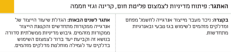 עם זאת, חשוב לציין כי הגז הטבעי הוא מקור אנרגייה פוסילי המזהם את האוויר ותורם לפליטות של גזי חממה, ויש לשאוף לצמצם את השימוש בו. בד בבד עם ההחלטה על הפסקת השימוש בפחם לייצור חשמל, נבחנת הגדלת שיעור ייצור החשמל מאנרגייה מתחדשת מיעד של 17% ליעד של 25%-30% בשנת 2030. צעדים אלה צפויים להביא להפחתה ניכרת של הפליטות ושל זיהום האוויר.