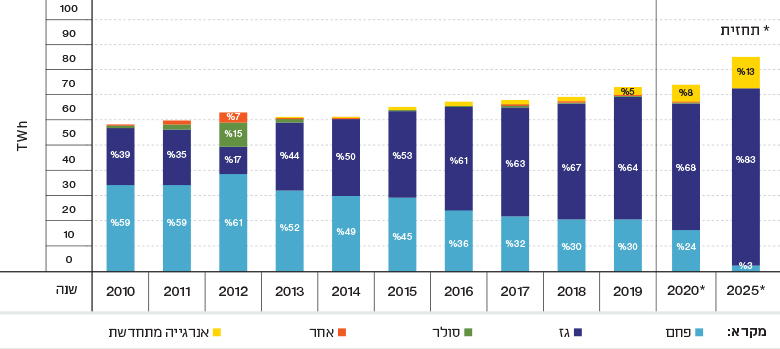 תרשים 2: שינוי תמהיל הדלקים המשקי בשנים 2019-2010 והצפי ל-2025