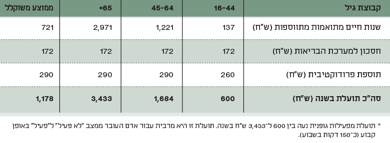 לוח 1: תועלת שנתית לאדם מפעילות גופנית עקב הצללה*